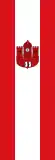 Описание флага: «Три вертикальных полосы в соотношении 3:5:3 (красный-белый-красный). На средней белой полосе изображён городской герб без щита, смещённый чуть выше середины.