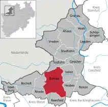 Подчинён административному округу Мюнстер. Входит в состав района Боркен. Занимает площадь 152,97 км². Официальный код — 05 5 54 012. Является третьим по величине в районе Боркен после Бохольта и Гронау.