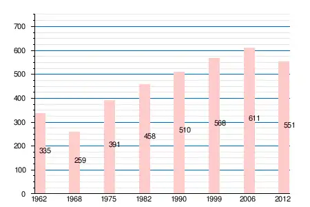 | 1962 | 1968 | 1975 | 1982 | 1990 | 1999 | 2006 | 2008 | 2011 | 2012 |
