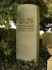 Макс Борн (нем. Max Born; 11 декабря 1882, Бреслау — 5 января 1970, Гёттинген) — немецкий физик-теоретик и математик, один из создателей квантовой механики. Лауреат Нобелевской премии по физике (1954). Член ряда научных обществ мира, в том числе иностранный член Академии наук СССР (1934).