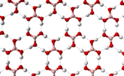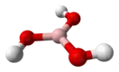 Бо́рная кислота́ (от лат. acidum Boricum, ортоборная кислота, химическая формула — H3BO3 или B(OH)3) — слабая химическая неорганическая кислота, отвечающая высшей степени окисления бора (+3).