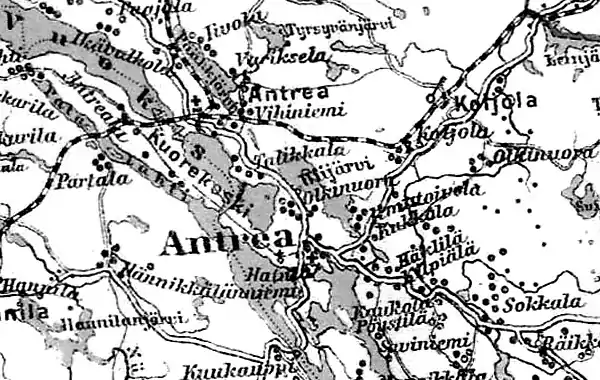 Деревни Кольола и Олкинуора на финской карте 1923 года