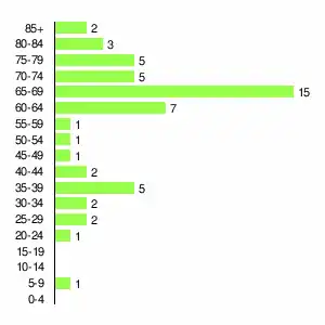 | Жителей | 172 | 235 | 315 | 256 | 239 | 188 | 133 | 92 | 53 |
