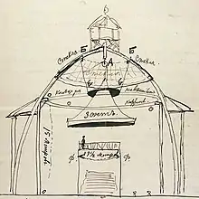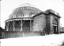 Специально для представления панорамы на Чистых прудах (на месте современного дома № 12А по Чистопрудному бульвару) в мае—июле 1912 года был возведён деревянный павильон по проекту архитектора и военного инженера Павла Воронцова-Веньяминова с ажурным куполом, разработанным инженером Е. Израиловичем[2][3]. Строительство шло в спешке, поскольку место для павильона было определено только в январе 1912, а само сооружение было задумано как временное — на 1 сезон. Капитальное деревянное строительство в этой части города было запрещено, и в перспективе павильон планировалось перестроить в камне. Размещение огромной картины и установка предметного плана заняли около месяца, и в конце августа на улицах Москвы появились рекламные афиши, анонсирующие скорое открытие панорамы «Бородино».