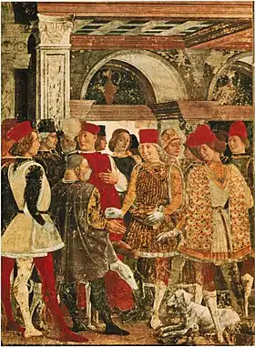 Во время работы над фресками во дворце Скифанойя, вместе с Тура трудились молодые живописцы Эрколе де Роберти (1450—1496) и Франческо дель Косса (1438—1480). Стиль последнего отличается выразительностью, реалистичностью и некоторой гротескностью. В 1467—1470 годах им были написаны фрески, изображавшие деяния Борсо в марте, апреле и мае. После 1470 года Косса переехал в Болонью. В Ферраре также начал свою карьеру живописец Бальдассаре д’Эсте, бастард маркграфа Никколо III. В 1469 году он получил место придворного художника. Живописец был блестящим портретистом. По приказу Борсо он переписал головы герцога на фресках во дворце Скифанойя, из-за чего их автор — художник Косса, обидевшись, покинул Феррару. Самыми известными работами живописца, созданными им в этот период, были «Конный портрет Борсо д’Эсте», «Портрет Альберто д’Эсте», «Портрет Лоренцо Строцци» и «Портрет Теофиле Кальканьиньего».