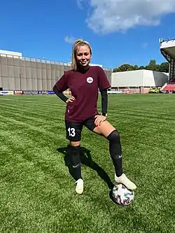 В составе сборной команды Казахстана участвовала в отборочном турнире к чемпионату мира по футболу 2019.