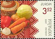 В 2005 году почта Украины выпустила блок, состоящий из двух марок с изображением набора продуктов для традиционного украинского борща. | ||||||||||