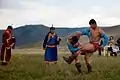 - Кайянская борьба на поясах в низкой стойке.