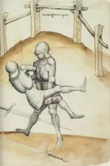 Во время Средневековья в Европе появляются и первые учебники по борьбе. Так, в 1443 году вышла «Фехтовальная книга» Ганса Талхоффера, содержащая в том числе и разделы, посвящённые борьбе, которые содержали отсылки на более ранние издания, не сохранившиеся до наших дней: 1388 года Карла Лихтенауэра и книги 13 века некоего мастера Отто — первого известного пособия исключительно по борьбе. В 1511 году вышла книга «Борьба» Ганса Вурма. В 1512 году вышла «Книга фехтования» Альбрехта Дюрера, с его же рисунками, содержащая 120 борцовских приёмов, впрочем не отличавшихся от ранее известных. В 1539 году вышла книга «Искусство борьбы. 85 приёмов» Ф. Ауэрсвальда.[13].[14] Естественно, что книги были доступны лишь высоким слоям общества; низкие слои продолжали культивировать свои национальные виды.