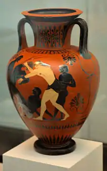 Большое развитие борьба, как искусство и элемент состязаний, получила в Древней Греции. Изобретение борьбы приписывалось мифологическим персонажам, например Афине, Тесею и Палестре, дочь Гермеса; первыми победителями называются Геракл и Теламон