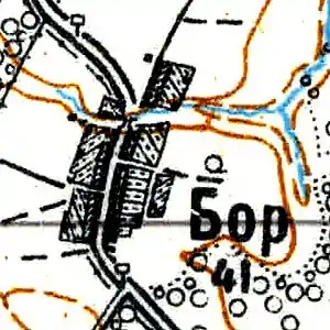 БОР НИКИФОРОВ — деревня и мыза владельческие при озере Череменецком и реке Луге, число дворов — 17, число жителей: 65 м. п., 54 ж. п.; Церковь православная[7]. (1862 год)