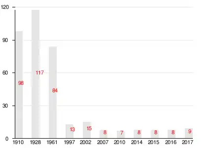 | 1910 | 1997 | 2007[13] | 2010[14] | 2014[15] | 2015[16] | 2016[17] |