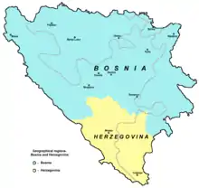 Обе области были тесно связаны со Средневековья, и часто название Босния употребляется для обозначения Боснии и Герцеговины вместе. Название Босния и Герцеговина появилось лишь в конце османского правления.