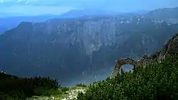 Босния и Герцеговина — типично горная страна: горный ландшафт занимает более 90 % территории страны[49]. Высота над уровнем моря в Боснии и Герцеговине имеет тенденцию к понижению от центра на юг, к Адриатическому побережью, и на север, к реке Саве. Несколько южнее располагается полоса невысоких гор и плодородных межгорных котловин, переходящих в Динарское нагорье, высота которого достигает более 2300 метров. Горы Герцеговины, почти лишённые всякой растительности, расчленены межгорными впадинами и сложены известняковыми породами грязно-белого и серого цвета[50]. Страна почти целиком расположена в пределах Динарского нагорья. Цепь горных хребтов с пологими вершинами и межгорными котловинами протягивается с северо-запада на юго-восток. В центральной части преобладают горные массивы средней и большой высоты, на севере и юге — низкие горы и холмы. Восточная часть Динарского нагорья — Боснийские горы, которые включают отличающиеся большой высотой Боснийские Рудные горы[51]. Самая высокая вершина — гора Маглич высотой 2386 м. Среди распространённых карстовых форм рельефа: пещеры, подземные реки, известняковые скалы, карры. В межгорных котловинах расположились полья больших размеров, крупнейшее из которых — Ливаньско-Поле площадью 405 км², меньшие — Дуваньско-Поле и Гламочко-Поле[52]. На севере — Среднедунайская низменность, охватывающая равнину долины реки Савы с обширными речными долинами. На юго-западе страны в районе города Неума расположено гористое побережье Адриатического моря протяжённостью около 20 км[20].