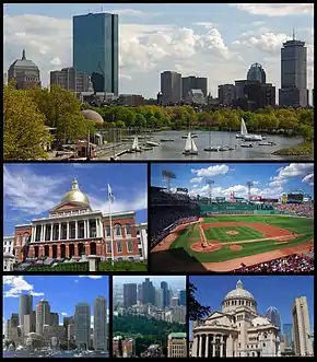 ![]() По часовой стрелке, начиная с верхнего левого угла: Бэк-Бей, Фенуэй Парк, Материнская церковь христианской науки, Бостон-Коммон, Даунтаун, Капитолий штата Массачусетс | |||||