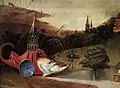 - отрезанная нога, традиционно ассоциирующаяся с увечьями или пытками, а у Босха — связанная к тому же с ересью и магией;