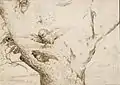 Гнездо сов. Перо, бистр. 14 х 19,6 см. Музей Бойманса-ван Бёнингена. Роттердам