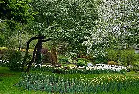 - Коллекция ирисов представлена садовыми группами высоких бородатых, карликовых, японских и сибирских ирисов, а также более чем 20 таксонами ирисов природной флоры.