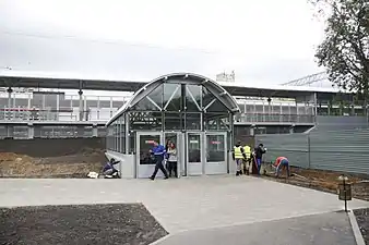 Пассажирский остановочный пункт МЦК включает в себя две высокие платформы с полукруглыми навесами — береговую и островную. Береговая платформа однопутная и используется для остановки электропоездов, следующих по часовой стрелке; островная двухпутная, внутренний путь используется для остановки электропоездов, следующих против часовой стрелки. Вход на платформы осуществляется через подземный пешеходный переход, оканчивающийся крытыми стеклянными наземными вестибюлями по бокам от платформы. В подземный переход интегрирован кассово-турникетный павильон, от которого имеются выходы к платформам.