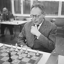 Михаи́л Моисе́евич Ботви́нник (4 августа 1911 год, Куоккала, Выборгская губерния, Великое княжество Финляндское, Российская империя — 5 мая 1995, Москва, Россия) — советский шахматист, 6-й в истории шахмат и 1-й советский чемпион мира (1948—1957, 1958—1960, 1961—1963). Гроссмейстер СССР (1935), международный гроссмейстер (1950) и арбитр по шахматной композиции (1956); заслуженный мастер спорта СССР (1945), 6-кратный чемпион СССР (1931, 1933, 1939, 1944, 1945, 1952), абсолютный чемпион СССР (1941). Чемпион Москвы (1943/44). Шестикратный победитель Шахматных Олимпиад в составе команды СССР (двукратный победитель в личном зачёте). «Патриарх» советской шахматной школы. Председатель Всесоюзной шахматной секции (1938—1939) и правления общества «СССР — Нидерланды» (с 1960). Заслуженный работник культуры РСФСР (1971), заслуженный деятель науки и техники РСФСР (1991). Доктор технических наук, профессор.