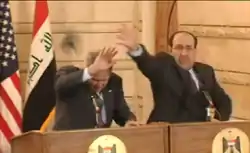 - Место основного вратаря в футбольной сборной Ирака, предложено премьер-министру Нури Аль-Малики, который прекрасно проявил себя, пытаясь поймать ботинки, пущенные в Джорджа Буша.