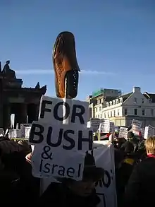 Сами ботинки моментально стали неким «символом американской оккупации в Ираке»[15] на антибушевских демонстрациях, и использовались как элемент транспарантов. В сети появились многочисленные карикатуры на Буша и ботинки, а также несколько флеш-игр на тему «попади в Буша ботинком».
