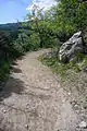 От Южнобережного шоссе тропа поднимается через высокоствольные лесные массивы крымской сосны, произрастающие по склонам Ялтинского амфитеатра[2] и приводит к ручью Ай-Димитрий, который в засушливое время года немноговоден. От ручья небольшими галсами выходит к ущелью Буфилья-Дере.