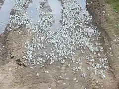 Бабочки выходят из куколки в июне, а на юге уже в мае. При выходе из куколки выступает капля красной жидкости (мекониум), что послужило поводом для суеверия о «кровавом дожде», который бывает в годы массового размножения данной бабочки. Из-за тесного контакта бабочек с пыльцой, при питании нектаром на цветах, отмечается окрашивание нижней стороны крыльев в красноватые и желтоватые, а также в оранжевые цвета — соответственно цвету пыльцы.
