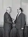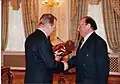 На фото Леонид Кравчук, президент Украины, вручает Брагилевскому Государственную премию Украины по науке и технике (чёрно-белое фото) и орден «За заслуги» (цветное фото).