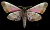 Основной фон крыльев серо-коричневый с затемнённым внешним и задним краями и узким коричневым пятном на поперечной жилке. В поперечном направлении проходят узкие коричневые перевязи, внешние из которых огибают чёрно-коричневое вытянутое по заднему краю пятно, расположенное в заднем углу крыла. Задние крылья красноватые или розово-красные, со светло-коричневой внешней частью и двумя чёрно-коричневыми пятнами у заднего угла.