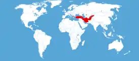 Балканы, в Малая Азия, Иран, Афганистан, Азербайджан: Долина Аракса, Талыш (Зуванд), Шемаха (Пиркули), юге Закавказье, Средняя Азия.