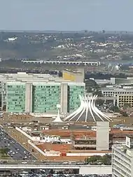 Бразилиа построена в 1957—1970 годах по распоряжению президента Бразилии Жуселину Кубичека специально как столица в центральной части Бразилии. Генеральный план составил архитектор Л. Коста с использованием идей Ле Корбюзье. Главным архитектором административных и общественных зданий стал О. Нимейер.