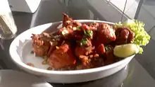 - Barreado[13] — типичное блюдо штата Парана, Бразилия. Это тушеное мясо, приготовленное на медленном огне, приготовленное в глиняном горшке, крышка которого запечатана своего рода глиной из пшеничной или маниоковой муки, отсюда и название (что буквально означает «мутный»). Традиционно Barreado готовили из мяса буйвола, но в наши дни его обычно готовят из говядины, бекона, помидоров, лука, тмина и других специй, укладывают последовательными слоями в большую глиняную урну, накрывают, а затем «barreada» (запечатывают) пастой из золы и фариньи (маниоковая мука), а затем медленно готовят в дровяной печи в течение 12-18 часов. В настоящее время все чаще используются скороварки и газовые или электрические духовки[14].