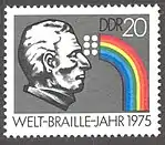 Postage stamp (East Germany, 1975): Braille has been honored on stamps worldwide.