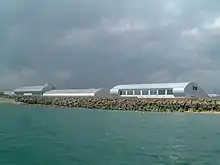 Искусственный мол, отделяющий пристань и жилые постройки от моря.
