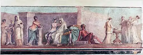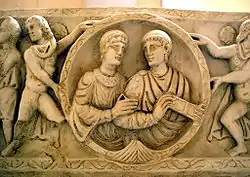 Брак в Дре́внем Ри́ме считался священным таинством и опорой государства[1]. Большинство браков в богатых семьях Древнего Рима заключалось по расчёту[1]: для продолжения рода (лат. matrimonium — «брак», от лат. mater — «мать»), для объединения владений, а также для укрепления политических союзов. Среди бедного населения нередко также преобладал расчёт, однако не исключались браки по любви[1]. Авторы времён Римской империи придерживались мнения, что республика была периодом расцвета римского брака, так как мужчины строго следили за моралью и поведением своих жён[2]. Партнёрство супругов в современном понимании не требовалось, было не только ненужным[3], но и невозможным[4]: в Древнем Риме считалось, что жена должна была посвятить свою жизнь поддержке мужа и заботе о нём[5].