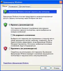 - Новая оснастка консоли Брандмауэр Windows в режиме повышенной безопасности, позволяющая получить доступ к дополнительным возможностям, а также поддерживающая удалённое администрирование. Получить к ней доступ можно через Пуск → Панель управления → Администрирование → Брандмауэр Windows в режиме повышенной безопасности или набрав команду wf.msc.
