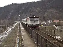 Планировался как часть железнодорожного аналога Йижни Спойка, то есть ветви Радотин—Вршовице, целью которой было провести грузовые перевозки дальше от центра Праги. Изначально трасса задумывалась как двухколейная, но реализована была только в одноколейном варианте, так как продолжалась в туннель в Мала Хухле, который одноколейный. Трасса соединяет железнодорожные ветви Прага—Плзень и Нусле-Модржаны. Мост, кроме реки Влтавы, идет над обоими этими ветвями, а также над линиями городского транспорта вдоль реки. В середине западной дуги есть ответвление, которое по плану должно было переходить в новый участок с туннелем в Глубочепы и Йинонице.