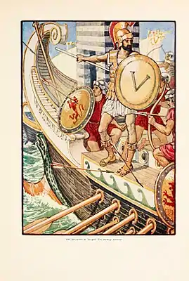 Он сделал тогда неудачную попытку овладеть Потидеей и должен был затем оставаться в бездействии. Между тем (422 до н. э.) афиняне послали в Македонию войско под руководством Клеона, который уступал энергичному, благородному Брасиду. Он завоевал много городов, а затем решил дать битву при Амфиполе. В этой битве афиняне потерпели поражение, потеряв всю Халкидику, но в сражении погибли оба полководца — и Брасид, и Клеон.