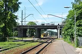 Необходимость в сооружении путепровода возникла в 1957 году, после электрификации железнодорожной линии, поскольку трамвайные провода не могли пересекаться с железнодорожной контактной сетью.