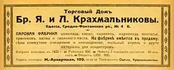 Успешное дело Абрама Крахмальникова продолжили двое из его сыновей — Лев и Яков. Им удалось развить и расширить производство пряничной продукции, значительно увеличив ассортимент выпускаемых сладостей. В 1893 году Лев и Яков Крахмальниковы открывают, как гласила вывеска, «Одесскую паровую конфектную и пряничную фабрику»[2]. Фабрика была одним из самых передовых производств того времени — использовались паровые двигатели[1], особое внимание уделялось условиям труда рабочих и мастеров-кондитеров. На фабрике был введён 10-ти (а позднее 9-ти) часовой рабочий день, за здоровьем персонала следил штатный врач, и в случае болезни рабочим выплачивались больничные деньги.