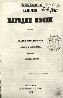 Сборник под названием «Бѫлгарски народни пѣсни. Собрани отъ братья Миладиновци, Димитрıя и Константина и издадени отъ Константина. Въ Загребъ. Въ книгопечатница-та на А. Якича, 1861»[1][2][3] выходит в Загребе в 1861 году. Он состоял из 660 болгарских народных песен из славянских областей Центральных и Восточных Балкан.