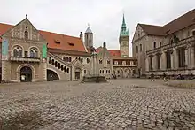 - Собор святого Власия построен по указанию герцога Генриха Льва в 1173—1195 годах, освящён в 1227 году. Собор представляет собой трёхнефную базилику со сводчатым потолком с тремя апсидами, двумя башнями и криптой. Примечательно надгробие Генриха и Матильды, созданное при императоре Фридрихе II. По своей значимости надгробие сравнимо с художественными произведениями соборов в Наумбурге и Бамберге. Здание подвергалось крупным изменениям в XIV—XV веках. Начиная с XVII века крипта собора начала использоваться как усыпальница князей из рода Вельфов. Рядом с собором на площади на высоком пятиметровом цоколе в 1166 году установлена бронзовая скульптура «брауншвейгского льва», смотрящего на восток (в наше время заменена копией).[16].