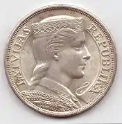 12 марта 1929 года была выпущена пятилатовая монета. Эскиз монеты разрабатывал график Рихард Зариньш. В качестве модели Зариньш выбрал Зелму Брауэре. Она была изображена в национальном костюме на реверсе 25-граммовой пятилатовой монеты[5]. Девушка должна была символизировать силу и богатство нации[6].