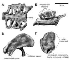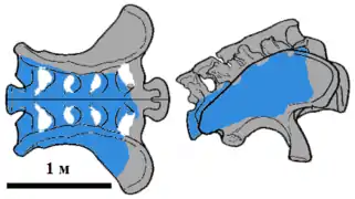Крестец "B." nougaredi; известные элементы отмечены голубым цветом