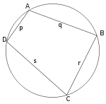 Брахмагупта предложил формулу вычисления площади четырёхугольника, вписанного в окружность[4]. Формула Брахмагупты является обобщением формулы Герона для площади треугольника. А именно, площадь S вписанного в окружность четырёхугольника со сторонами a, b, c, d и полупериметром p равна
