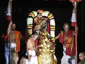 Каждый день Малайяппа свами передвигается на специальных носилках или колеснице, символизирующих ваханы, то есть ездовых животных и птиц божеств. К ним относятся[11][1]: