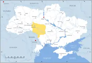 | Брацлавщина (выделено жёлтым) на карте современной Украины | |