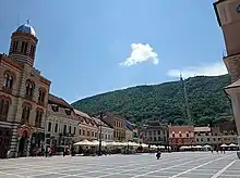 Главная площадь- Церковь Св. Николая — церковь была построена из камня в 1495 году благодаря поддержке лидеров всех румынских областей. Её внушительный размер доминирует над самой старой частью города — Шкей Брашовулуй;