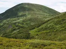 Вершина горы куполообразная, северные склоны крутые. В нескольких местах склоны изрезаны карами давнего обледенения. Господствуют каменные россыпи. Покрытый альпийской и субальпийской растительностью. Развиваются процессы эрозии. Рельеф преимущественно каменистый. На западном склоне горы расположена впадина с небольшими и непостоянными озерцами.